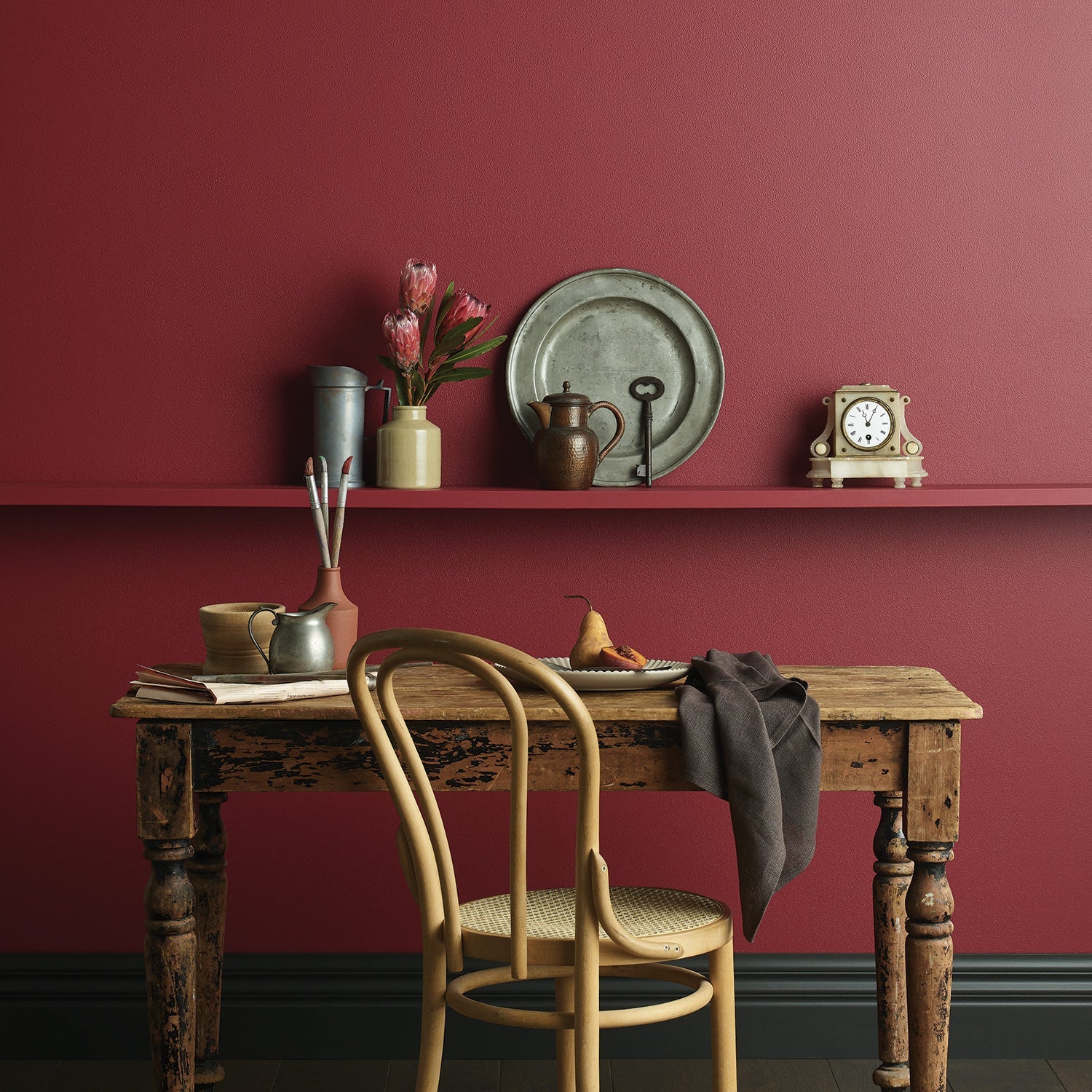A sophisticated deep red that creates a sense of warmth and luxury.